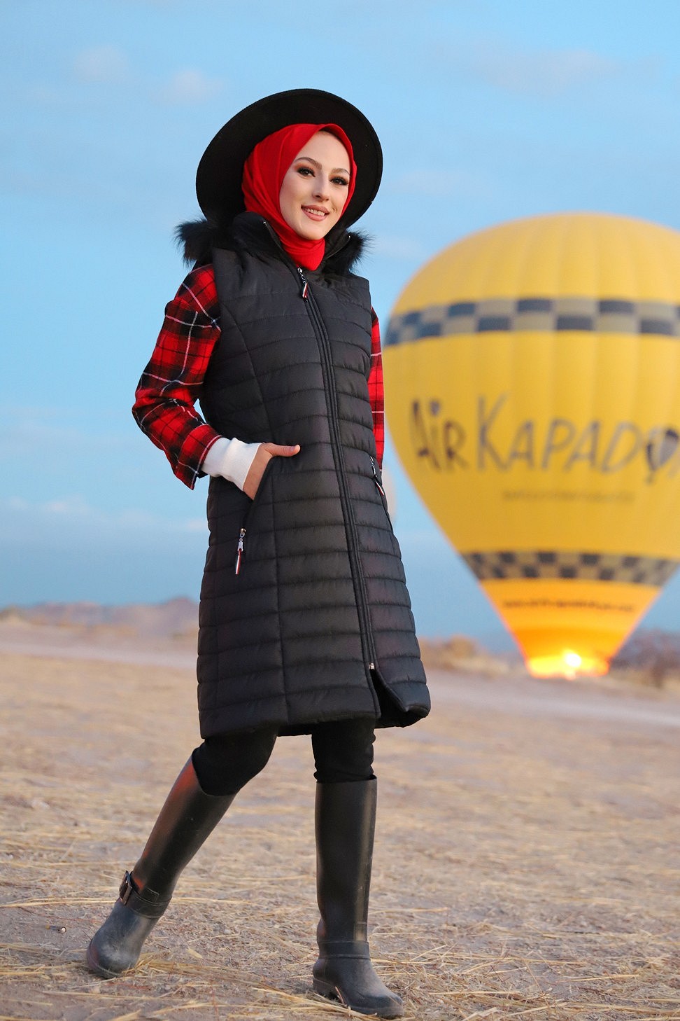 Gilet à fourrure avec ceinture pour femme (Vêtement Saison hivernale) - Couleur noir - REF. 38273 (25.00 €)