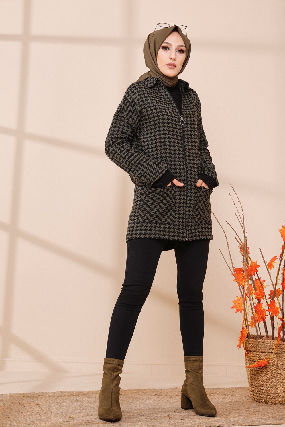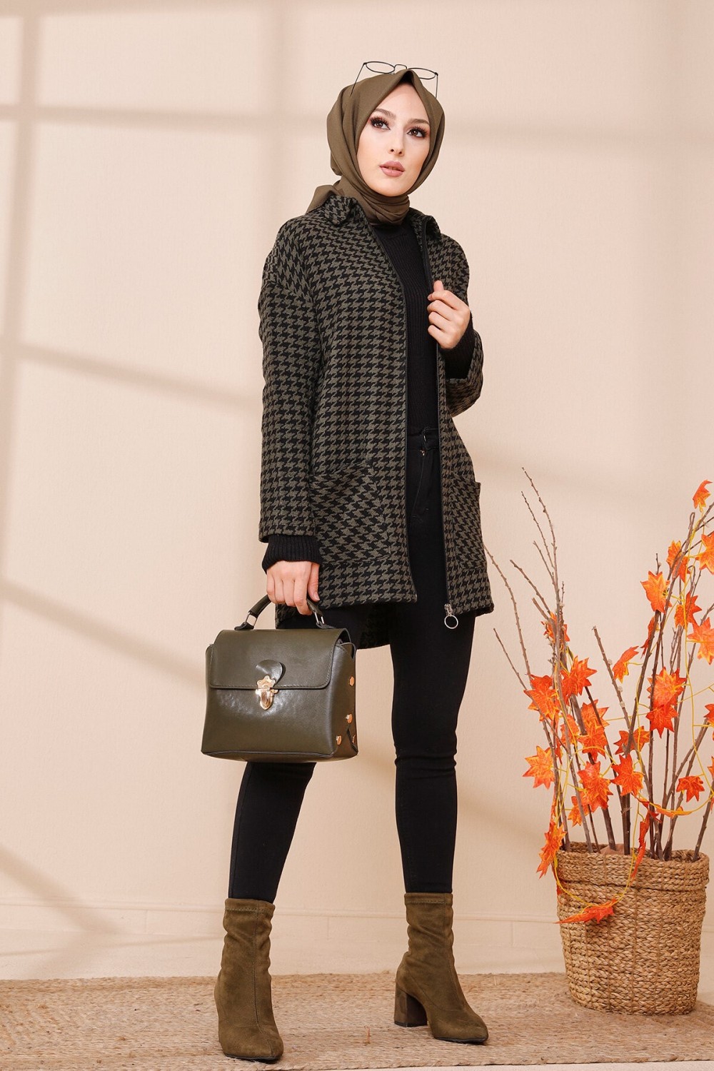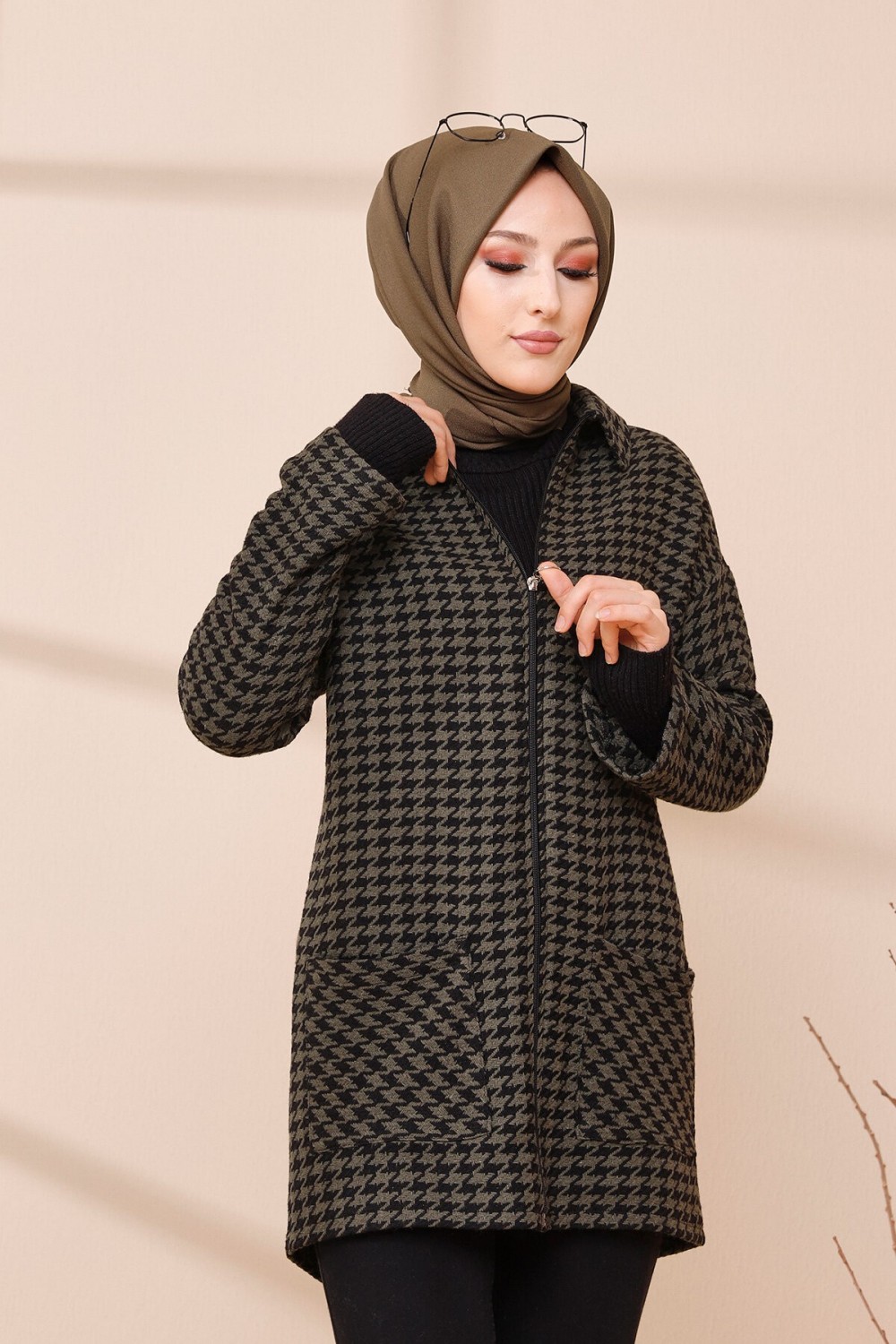 Manteau avec fermeture zip (Veste habillée Modest Fashion) - Couleur kaki Vetement & Accessoire