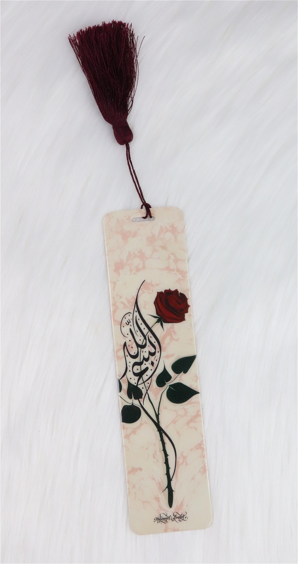 Marque-page avec pompon en sabra rose - Calligraphie artistique du Nom Divin "Allah" - REF. 36351 (4.90 €)