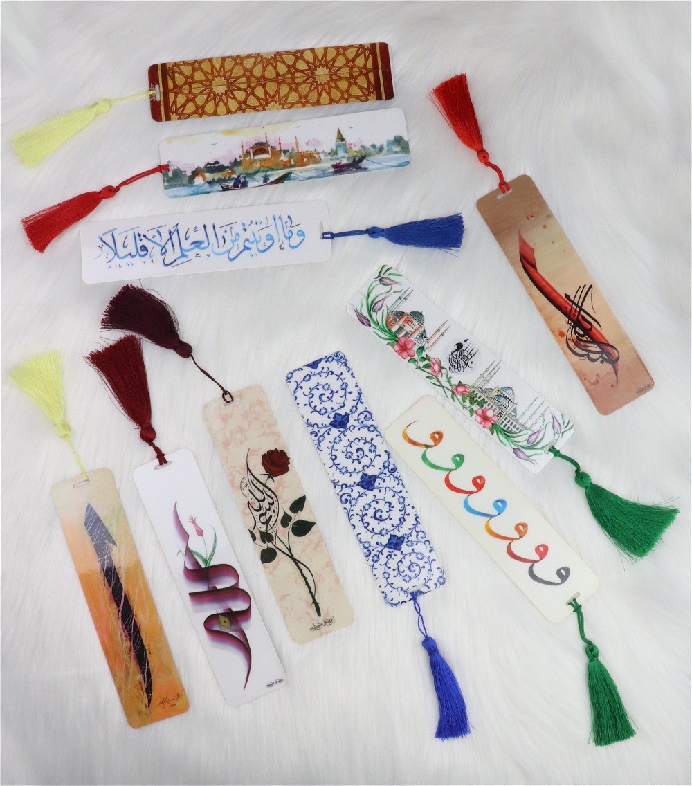 Marque-page avec pompon en sabra bleu - Verset coranique sur la Science S17-V85 - REF. 36291 (4.90 €)
