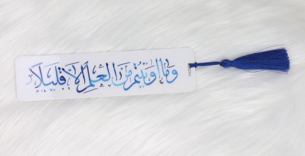 Marque-page avec pompon en sabra bleu - Verset coranique sur la Science S17-V85 Deco & Cadeau