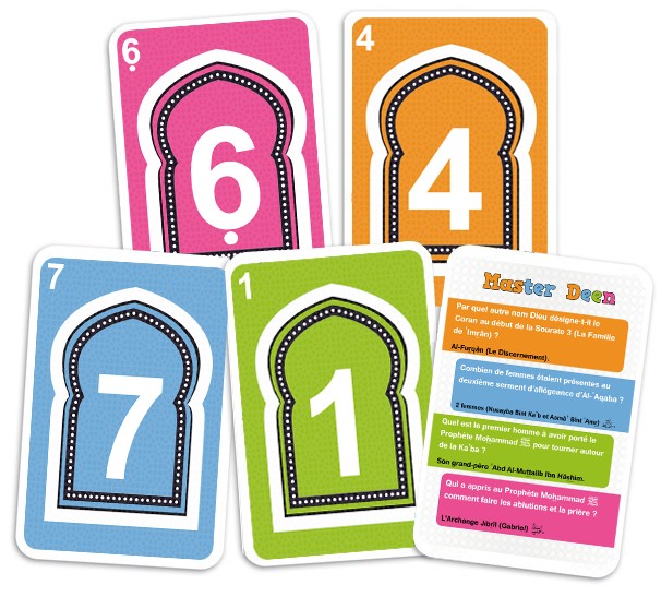 Master Deen est un jeu éducatif intelligent. C’est un mélange du jeu "Uno" et de "Trivial Pursuit". La famille musulmane peut ainsi apprendre ou renforcer ces connaissances sur l'Islam tout en s'amusant...
