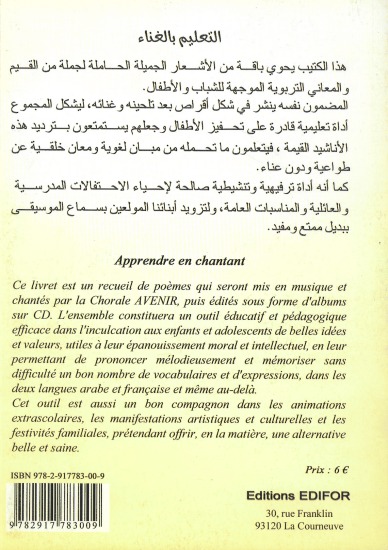 Chants à apprendre pour enfants (1) أناشيد و محفوظات للأطفال - REF. 1998 (1.50 €)