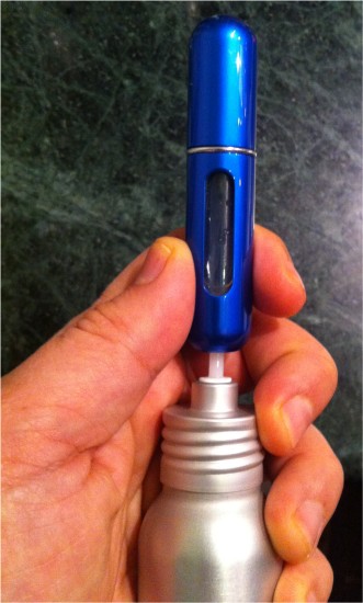 Très simple à remplir : il suffit d'exercer une pression plusieurs fois avec le bout de votre parfum (après avoir retiré le bouchon) sur l'atomiseur de poche au niveau de son entrée et ce dernier se remplit automatiquement. Vous pouvez voir sur le côté le niveau du parfum.
