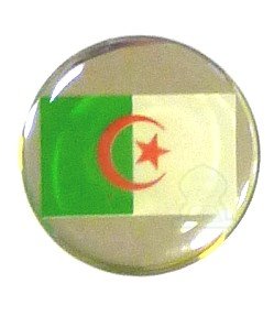 Mini-badge autocollant drapeau algerien (Algerie) sur fond argente