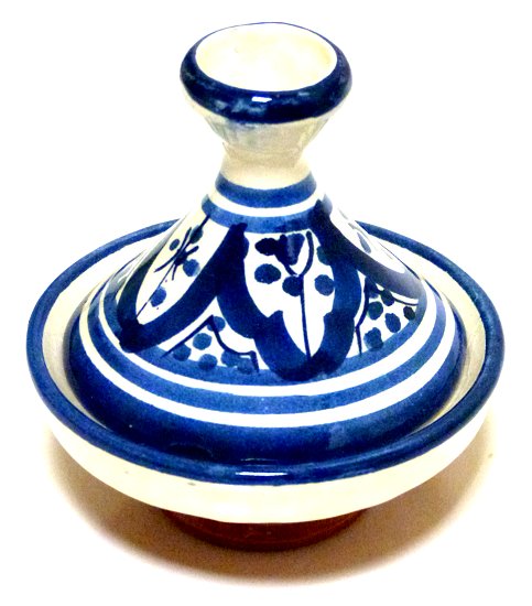 Les Mini-Tagines sont des poteries de style artisanal marocain, fabriqués par les potiers de père en fils, entièrement décorés à la main par des artistes marocains. Le Mini-Tajine peut être utilisé pour servir tout ce qui est accompagnement et pour présenter épices, sauces ou en tant que brûleur d'encens... Plusieurs couleurs existent.