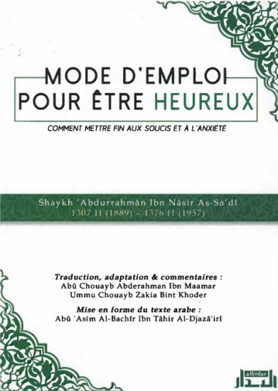 - Nous avons essayé de faciliter la lecture de cet ouvrage, ainsi que sa compréhension. C’est pourquoi nous avons demandé l’aide de nos frères et sœurs, qui ont été nombreux à nous relire et à corriger nos erreurs, qu’Allah les récompense et leur attribue de nombreuses bénédictions.