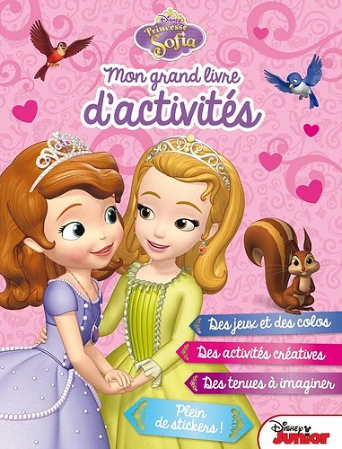 Un grand livre de jeux et d' activités Princesse Sofia à spirale et élastique. Des activités créatives pour fabriquer des objets originaux aux couleurs de la Princesse Sofia : mobiles, photophores, cadre photo … + de 200 stickers, des coloriages, des jeux et des tests 100% filles.