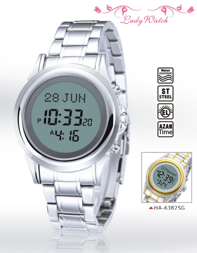 Montre digitale avec horaires de priere (calcul automatique des heures des prieres) - Modele De Luxe pour femmes (HA-6382-SG)