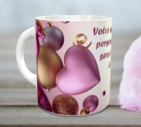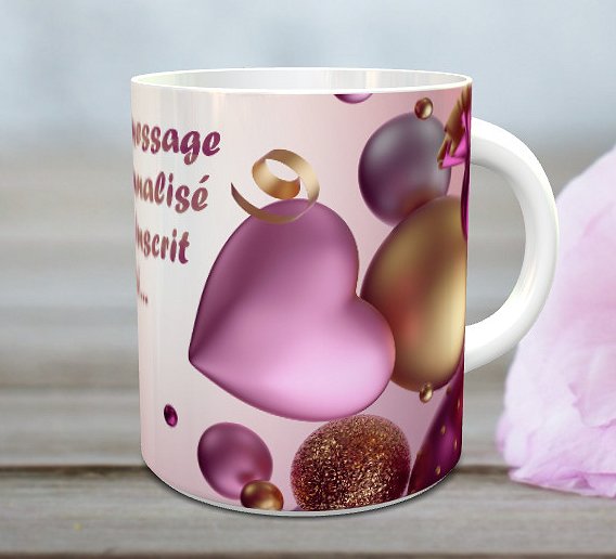 Mug 3D cœur et fête - Tasse cadeau avec un message personnalisable (Fabriqué en France - Livraison rapide) Deco & Cadeau