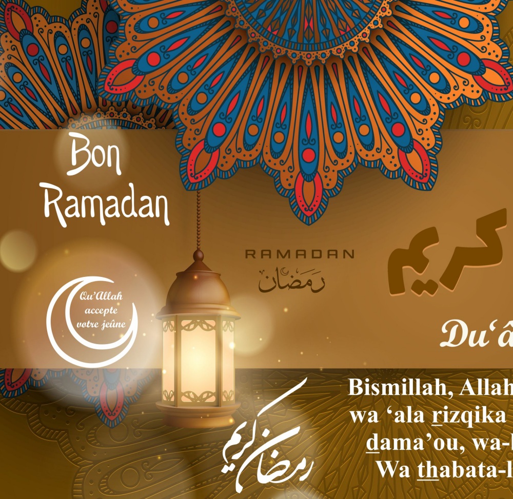Mug Bon Ramadan (Ramadân Kareem) avec invocation de rupture du jeûne (en français et arabe phonétique) - rosace Deco & Cadeau