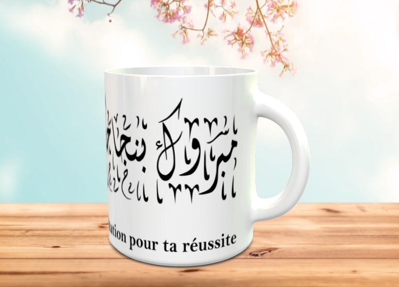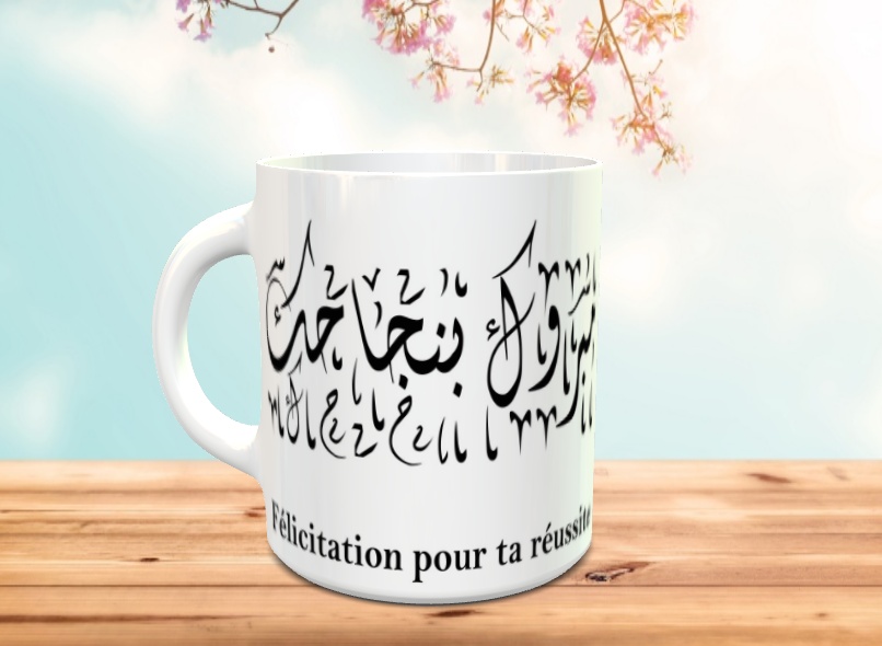 Mug "Felicitation pour ta reussite" avec calligraphie arabe -
