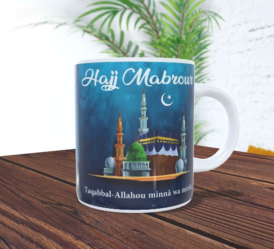 Mug "Hajj Mabrour" a offrir au pelerin (celui qui revient du Hadj a La Mecque) avec invocation -