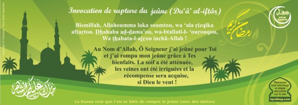 Mug Ramadan - Ramadân Karîm Qu'Allah accepte notre jeûne - avec invocation de rupture du jeûne - Dou'a al-iftâr - "Dattes sebha" - REF. 34877 (5.90 €) |