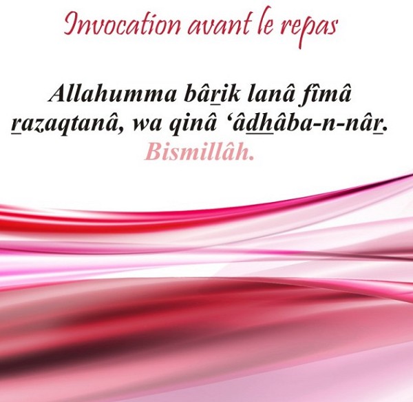 Allahumma bârik lanâ fîmâ razaqtanâ, wa qinâ ‘âdhâba-n-nâr. Bismillâh.