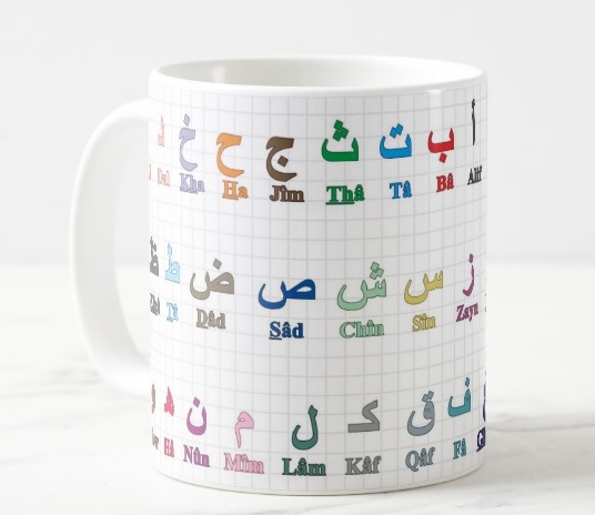 Mug Lettres arabes (Tasse en porcelaine avec alphabet arabe artistique) - REF. 22434 (5.90 €)