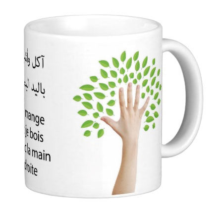 Mug "Je mange et je bois avec la main droite" (pour enfants) - REF. 22321 (5.90 €)