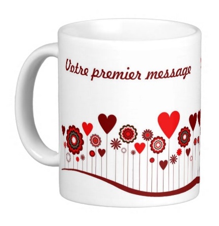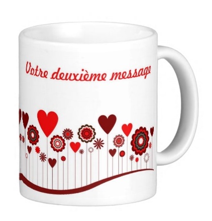 Recevez ce mug original décoré de cœurs et fleurs avec des messages/prénoms de votre choix.