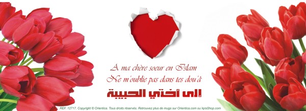 Mug "Pour ma chère soeur en Islam, Ne m'oublie pas dans tes dou'â" - Tulipes rouges - REF. 12717 (5.90 €) |