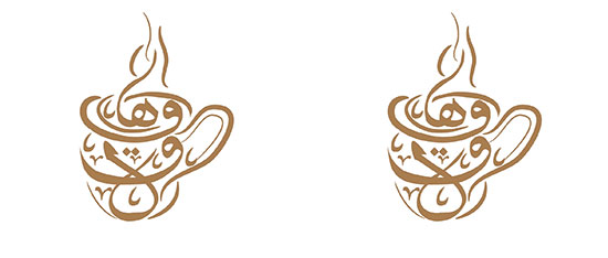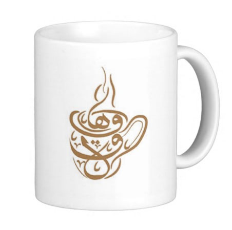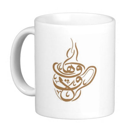 Mug avec calligraphie artistique du mot arabe "Qahwa" (قهوة) signifiant : café...
