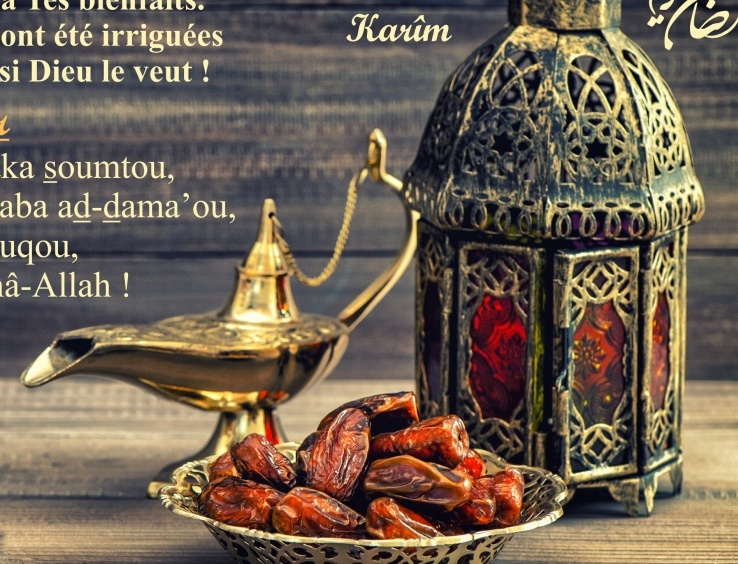Mug Ramadan - Ramadân Karîm Qu'Allah accepte notre jeûne - avec invocation de rupture du jeûne - Dou'a al-iftâr - "Dattes sebha" - REF. 34877 (5.90 €)