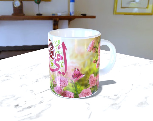 Mug avec inscription calligraphique artistique arabe أمي الغالية : Oummî Al-Ghâliya.