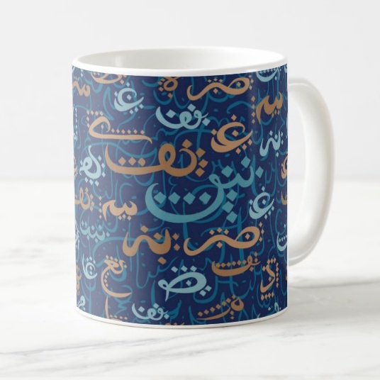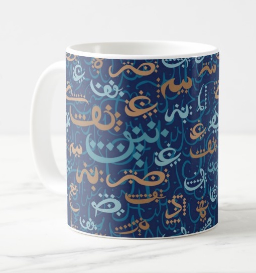 Mug Lettres arabes (Tasse en porcelaine avec alphabet arabe artistique) - REF. 22434 (5.90 €)