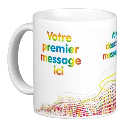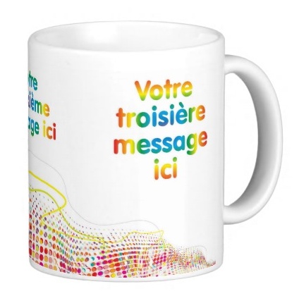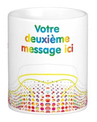 Recevez ce mug original multicolore personnalisé à votre guise avec la possibilité d'y inscrire trois messages (ou prénoms)...