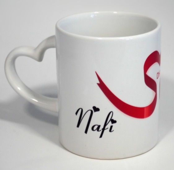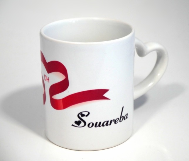 Mug avec anse en forme de coeur personnalisé avec 2 prénoms et l'illustration du coeur de votre choix (Pour couple) - REF. 20777 (12.00 €) |