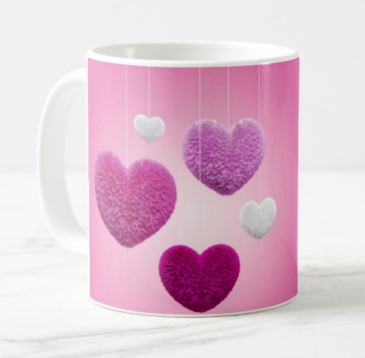 Mug personnalisable avec deux grands coeurs roses - REF. 23457 (9.90 €) |