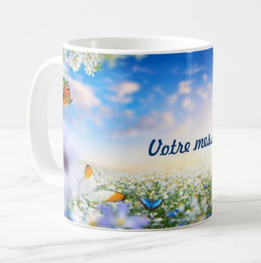 Mug avec message personnalise (Nature - Fleurs - Papillons) - Tasse cadeau personnalisable