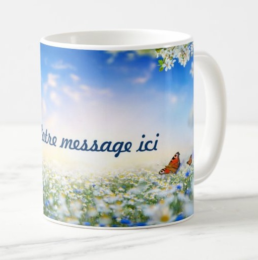 Mug avec message personnalisé (Nature - Fleurs - Papillons) - Tasse cadeau personnalisable - REF. 34614 (9.90 €)