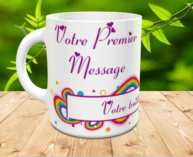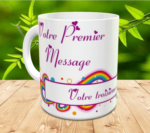 Mug avec plusieurs messages personnalises (arc-en-ciel multicolores)