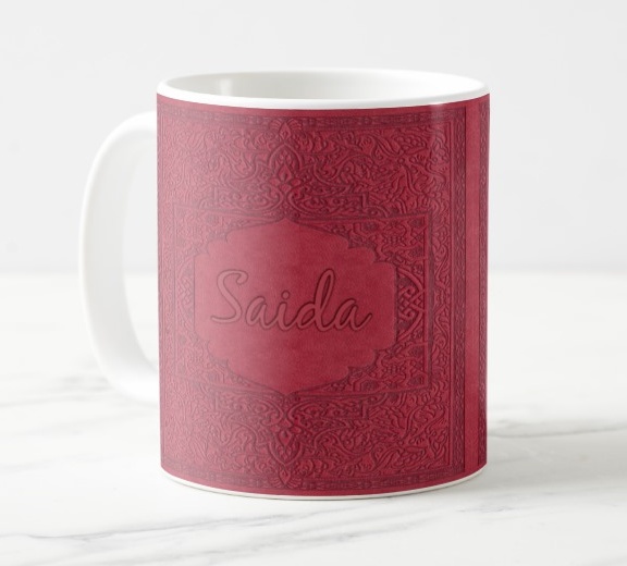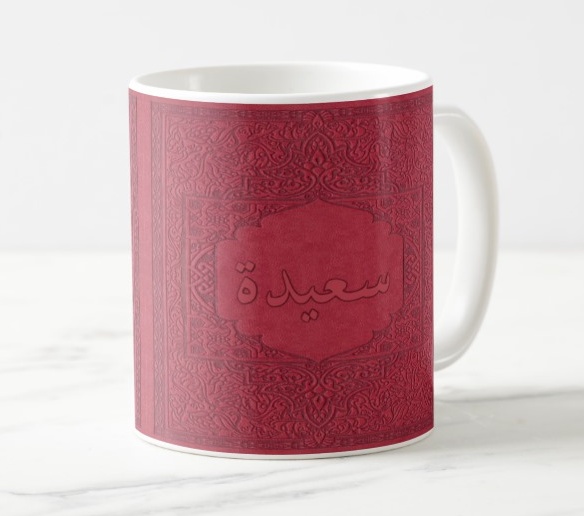 Mug avec prénom personnalisable en calligraphie arabe style "Naskh" (Tasse bordeaux) - REF. 24890 (9.90 €) |