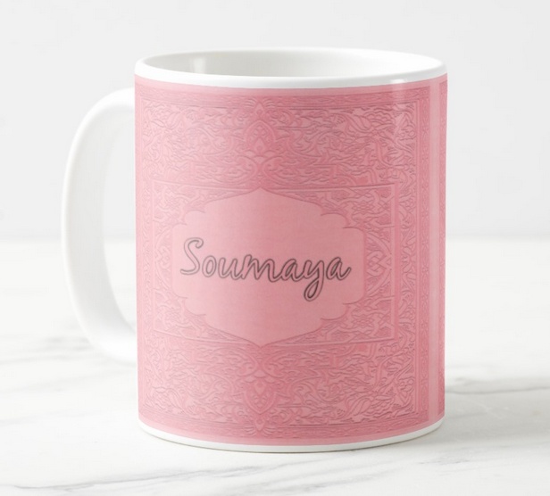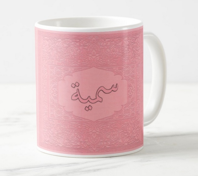 Mug avec prénom personnalisable en calligraphie arabe style "Naskh" (Tasse rose) - REF. 23825 (9.90 €) |