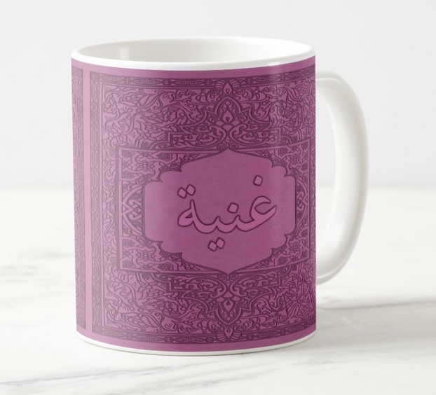 Mug avec prénom personnalisé en calligraphie arabe style "Naskh" (Tasse mauve) - REF. 23827 (9.90 €) |