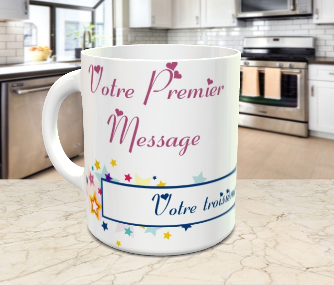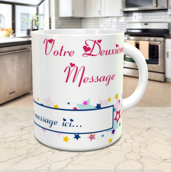 Mug cadeau avec plusieurs messages personnalises (etoiles multicolores)