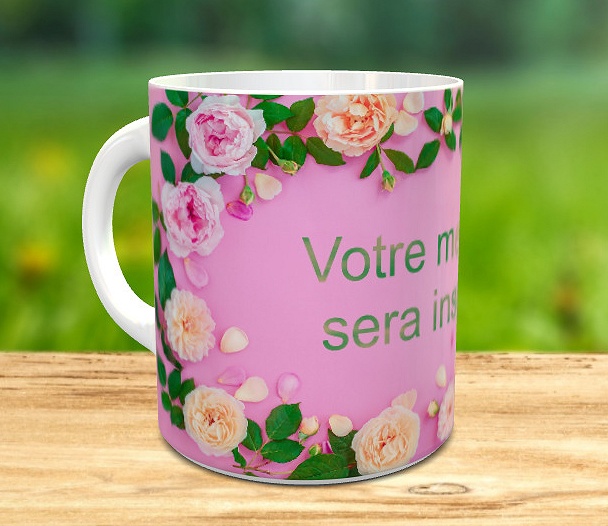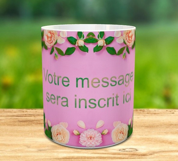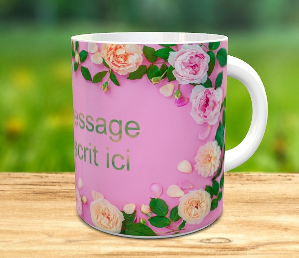 Tasse rose personnalisable avec messages ou prénoms de votre choix (Mug Fleurs Roses) - REF. 37002 (9.90 €)