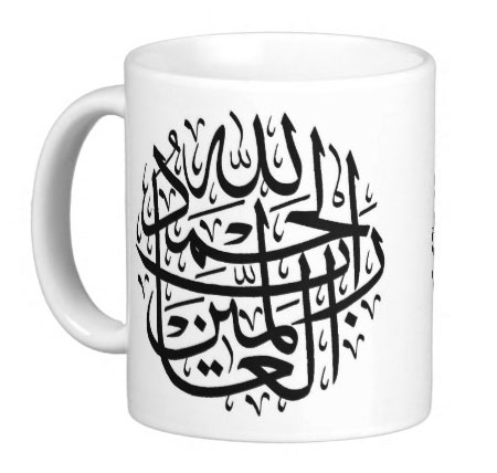 Mug décoratif imprimé des deux côtés avec calligraphie arabe : Louange à Allah Seigneur de L'Univers - الحمد لله رب العالمين.