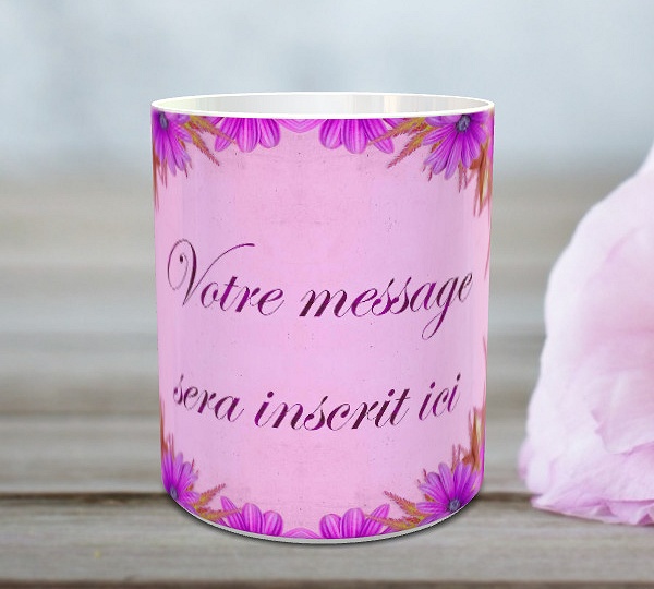 Mug message dans un collier de fleurs - Tasse avec un message personnalise (mauve-violet)