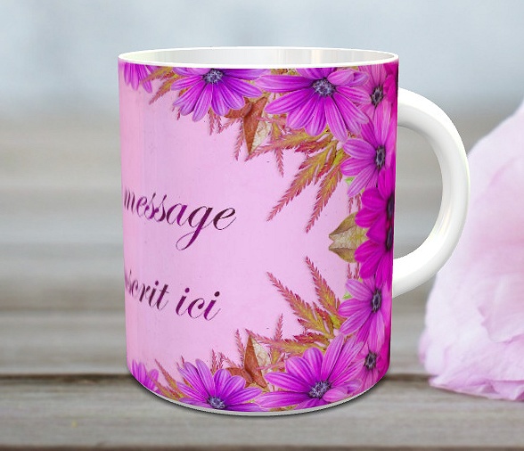 Mug fleur jaune et violet - Tasse cadeau avec message personnalisé - REF. 36897 (9.90 €)