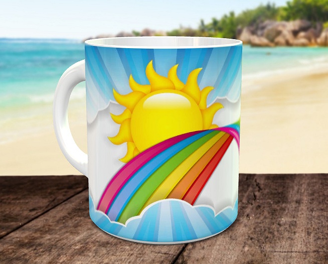 Mug multicolore pour enfant - Tasse cadeau originale avec arc-en-ciel soleil et message personnalise