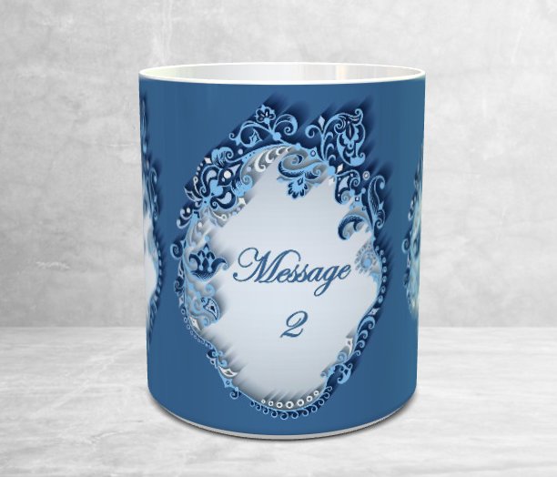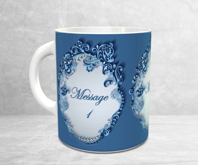 Mug arabesque avec deux messages personnalisés (Tasse beige et marron) - REF. 36851 (9.90 €)