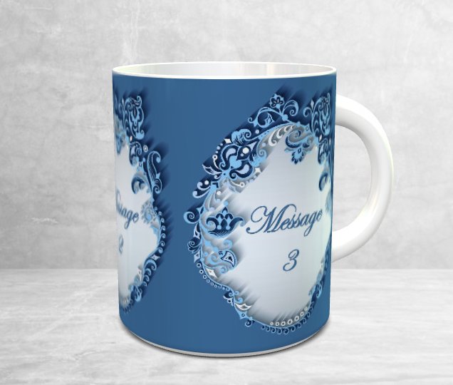 Mug personnalise - Tasse cadeau avec trois prenoms ou messages (fond bleu)