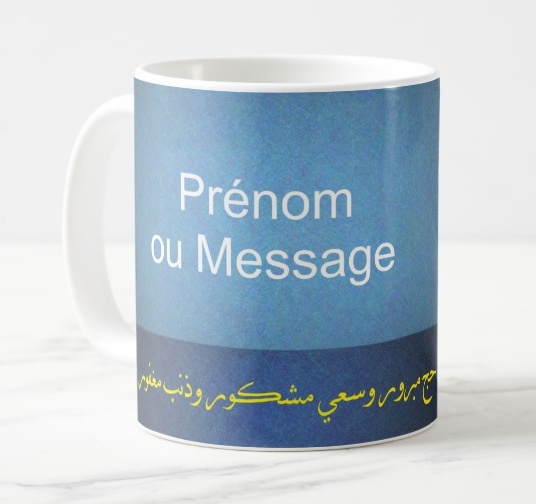 Mug personnalisé à offrir au pèlerin (celui qui revient du Hajj) avec message ou prénom et invocation - حج مبرور وسعي مشكور وذنب مغفور - REF. 24524 (9.90 €) |