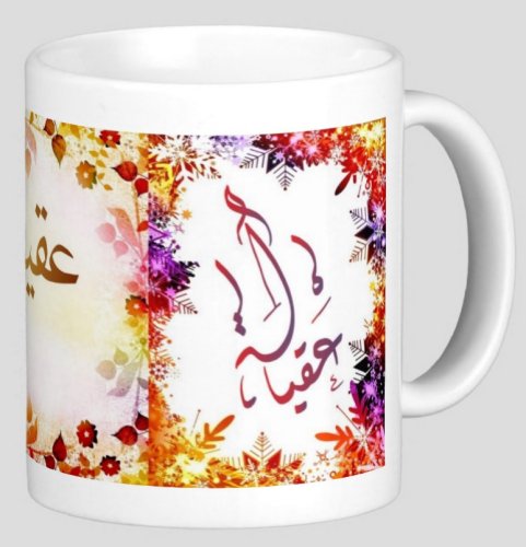 Mug avec le prénom arabe féminin "Akila" calligraphié en arabe (عقيلة).