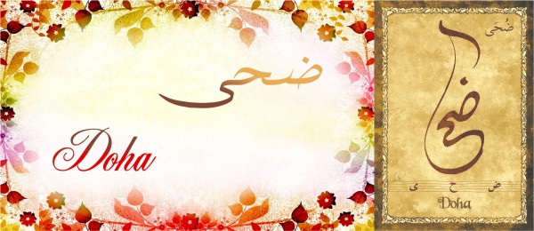 Signification (sens) du prénom Duhâ (Doha, Zoha)ضُحَى: Moment de la journée juste après l’aurore, début de matinée. Ad-Duhâ est aussi le titre de la Sourate 93 du Coran.