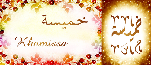 Signification (sens) du prénom Khâmisa (Kamissa) خَامِسَة: Qui occupe un rang marqué par le numéro cinq. Cinquième.