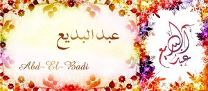 Signification (sens) du prénom ‘Abdulbadî‘ (Abd-El-Badi, Abdoulbadi) عَبْدُ الْبَدِيع: 'Abd Al-Badî‘ : Serviteur du Novateur, de Celui qui a créé toute chose sans exemple précédent.