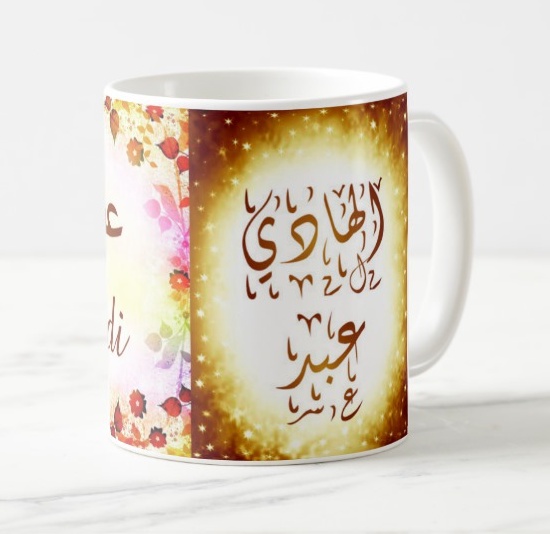 Voir l'ensemble des mugs dédiés au prénoms calligraphiés en arabe (Mugs prénoms arabes et musulmans féminins - Mugs prénoms français)